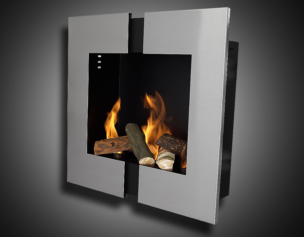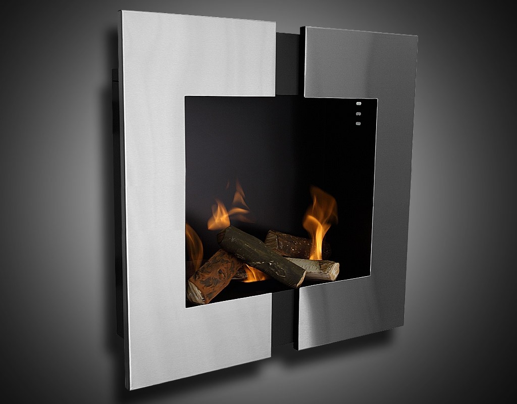 Závěsné bio krby, zabudovatelné bio krby. Kombinace nerezu a plechu.