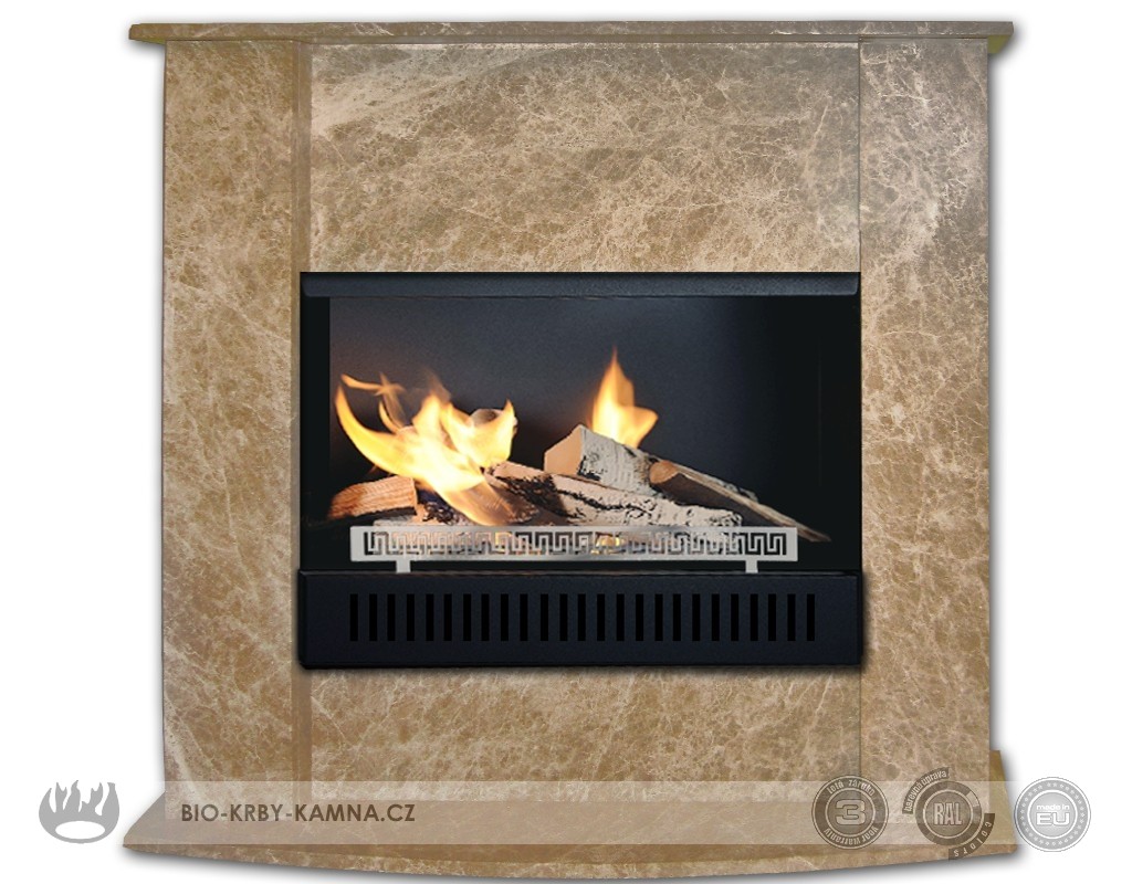 Čierna matná bio-vložka, krbová obstavba - prírodný kameň mramor Emperador Light.